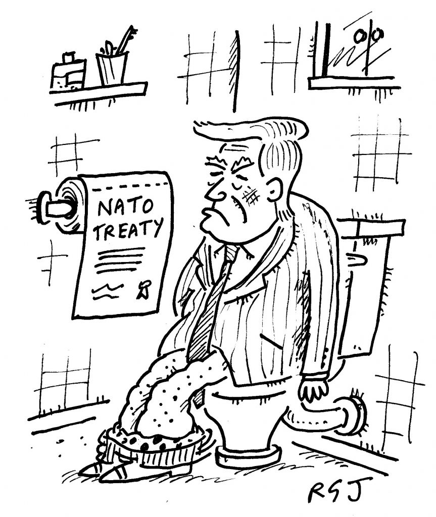 I was in a bit of a bind. I really did hope that there would be a reaction in the hall that would show the millions of Americans back home who loathe what he is doing that they are not alone, and that far from America being GREAT and RESPECTED (his CAPS) again, he is doing huge damage to their country’s standing in the world. But I didn’t particularly want to do anything that would be characterised as some kind of attention-seeking grandstanding, or risk being hauled out by a few of the dozens of secret servicemen hanging around.
