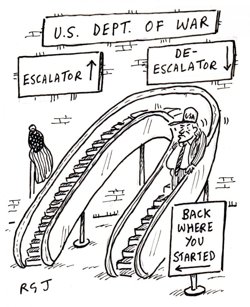 When I turn to war secretary (sic/sick) Pete Hegseth’s seeming glorification of the violence and death for which he is now responsible, Stewart puts a truly horrible thought into my head. “It is sexual for him,” he says. “Look at him when he is talking about it. It’s erotic. There is a revelling in it that is stunning.”