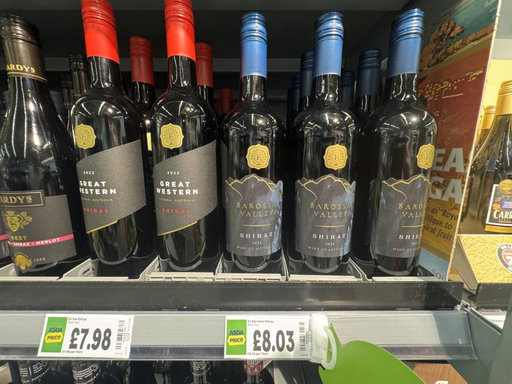 Onto Asda’s wine aisle, where placards boast: “We’re the most-awarded supermarket for wine” in 2025. Ironically, and again, confusingly for the consumer, more prominent than medal stickers on bottles is the gold logo of Asda’s own ‘Exceptional’ range, which clearly resembles a medal. However, for clarity, this is not the “Exceptional” awarded by Decanter for wines that achieve 98-100 in its scoring system!