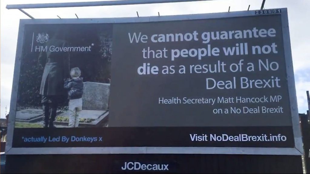 The campaign, which has seen 20 billboards erected so far this week, is designed to counter a reported £100 million no-deal advertising drive by the Government.