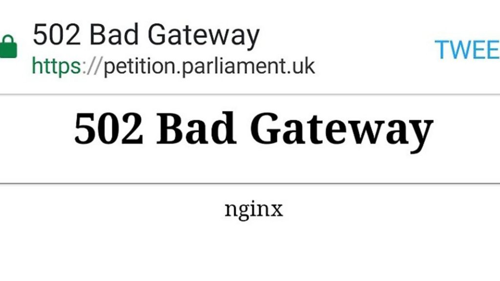 By 9am the next day the petition website had crashed with demand, leaving visitors with a ‘bad gateway’ message, and some believing it had been done intentionally. It was shortly replaced by a message that the website was ‘under maintenance.’