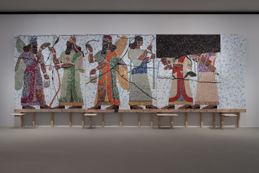 Constructed in 2018, Rakowitz’s Lamassu was originally displayed on Trafalgar Square’s Fourth Plinth in London, the prestigious space reserved for temporary commissions of contemporary sculpture in the institutional heart of the city. It is, in the artist’s words, a “reappearance” of one of the colossal Lamassu monuments that were taken from the ancient Assyrian city of Nimrud near modern-day Mosul in Iraq during the 1840s.
