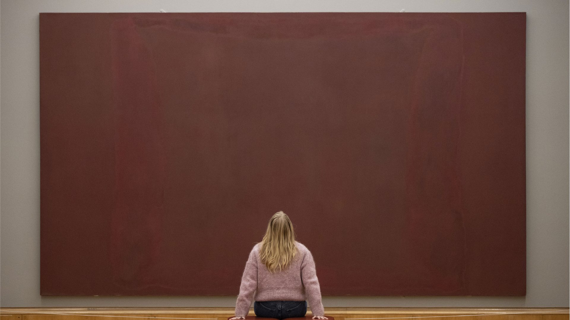 These monolithic abstractions hang near floor level, making it easier for viewers to immerse themselves in them as Rothko intended. The lighting is low, and the indistinct blending of colours has a subtle effect that intensifies the longer you stand in front of them. They have been described as“Buddhist television sets” and have always drawn viewers who stand or sit in a kind of calm, focused, and meditative state. But that’s not quite how the artist intended them to be experienced.