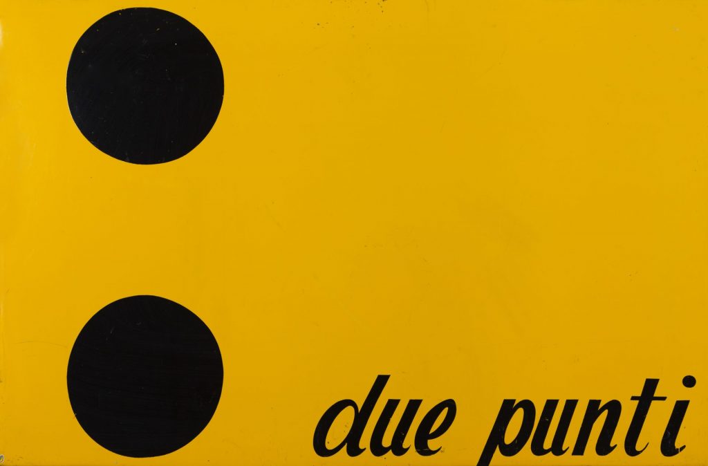 She subverts the clarity expected from signs, especially road signs – themselves a postwar initiative, introduced following the 1949 Geneva Convention on Road Traffic – to favour ambiguity, and poetry, as in her 1968-69 “road sign” that points the way to Vasta Eco (Vast Echo).