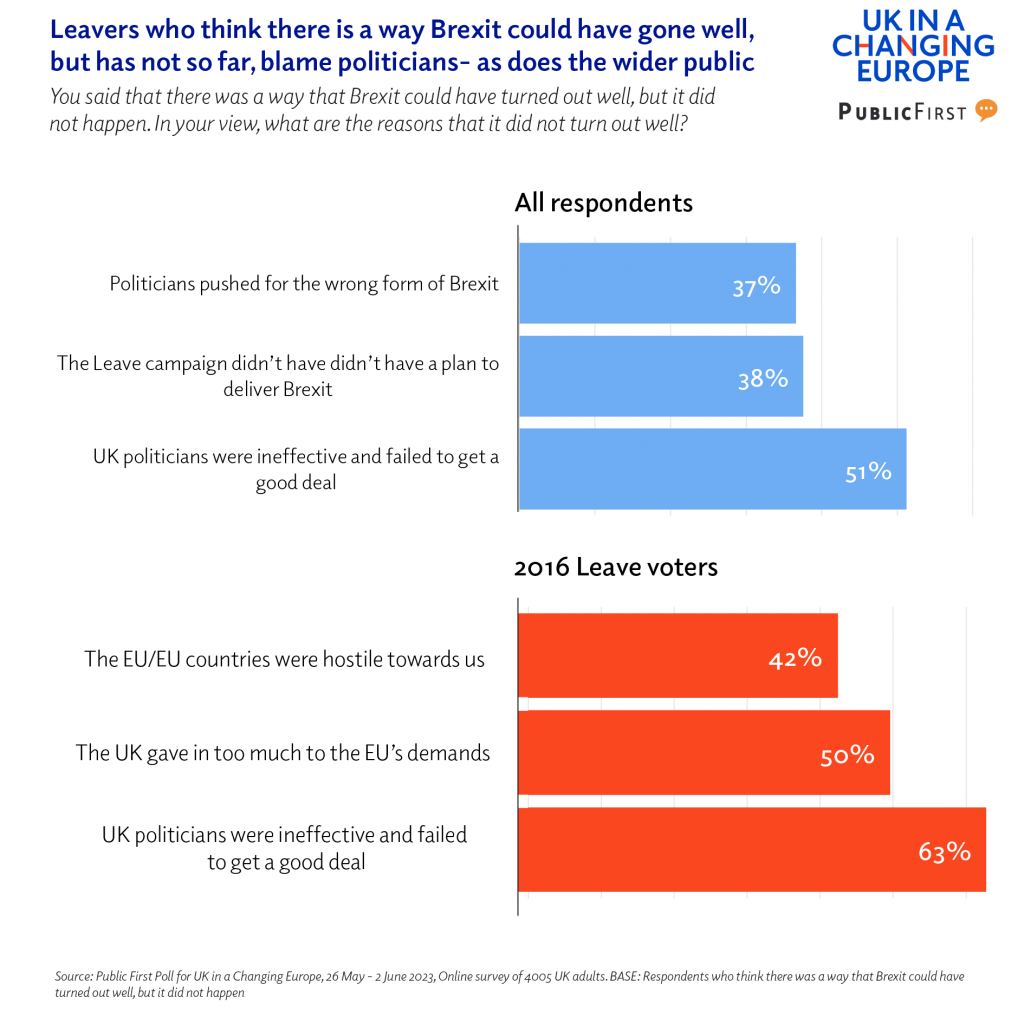 This is reinforced by the fact that many of the concerns of Leavers who are dissatisfied with how Brexit has gone – increased difficulty trading, anger with the current government, or frustration with the frostiness of the UK-EU relationship – can be rectified. The election of a new government which is willing to work more closely with the EU and walk back some of the current government’s red lines might help assuage their concerns.