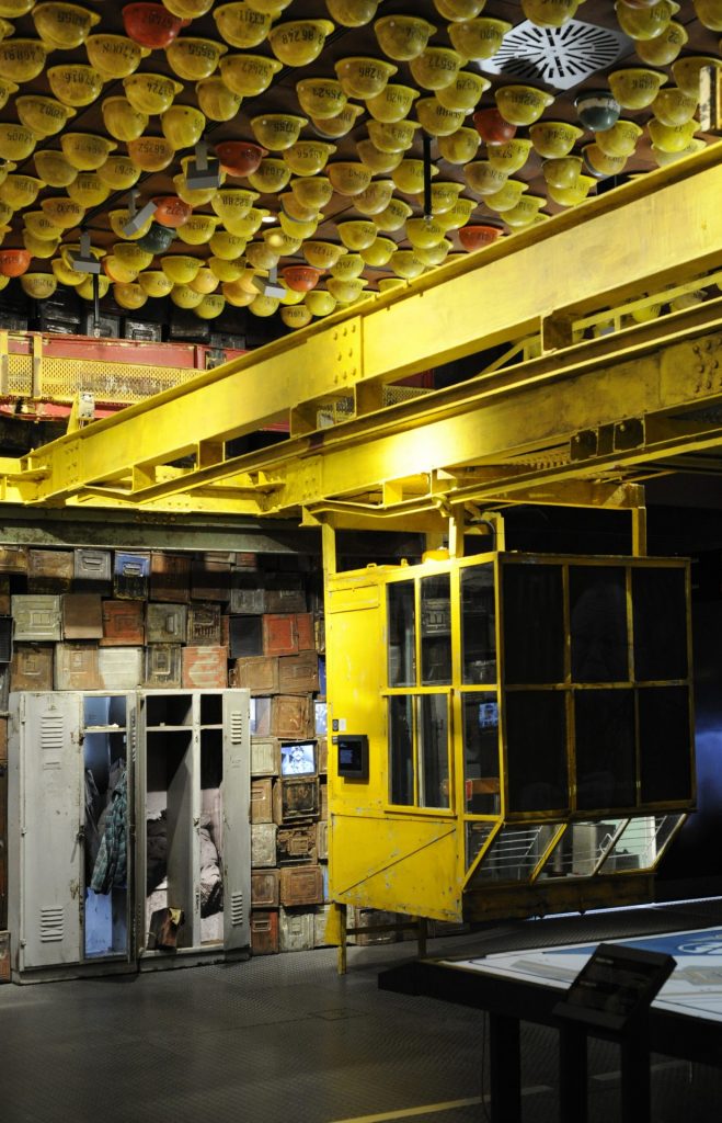 The ceiling is covered with yellow dockers’ helmets. “Each one has a number on it and workers used to try to cover these up,” said Jacek Kołtan, the centre’s director of research. “But with the Solidarity movement they lost their fear of the authorities and their spies.”