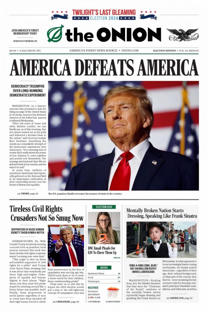 A satirist feels right for our times. A section of the user-generated website Reddit, the r/NotTheOnion subreddit, shares real news headlines that all read like the silliest, most bitter black humour. “Florida Deploys Police To Stare At Crosswalks, Stop Them From Being Painted Rainbow Colors”; “Gavin Newsom’s team unveils new nickname for Kristi Noem”; and “RFK Jr. slams windmills for killing whales despite being accused of chopping one’s head off” are just a few from the last week.