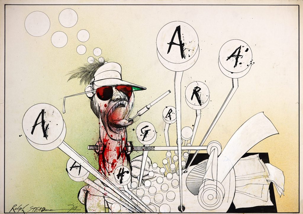 Steadman strokes his chin and says that in those days he had what Thompson called “that weird growth” – a goatee – and a thick mane of untamed hair. The writer took one look at him and famously exclaimed, “Holy God, where did they dig you up from?”
