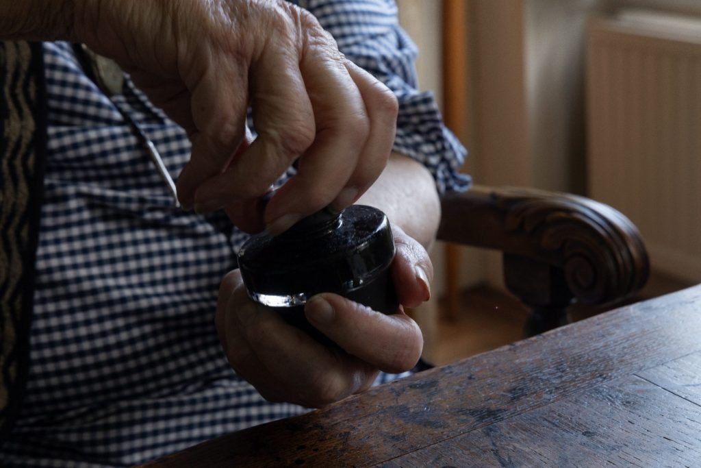“Mmm, I will write something down. Drawing? I can’t do it any more. Did I used to draw?” he says, a tease of a twinkle in his eye.