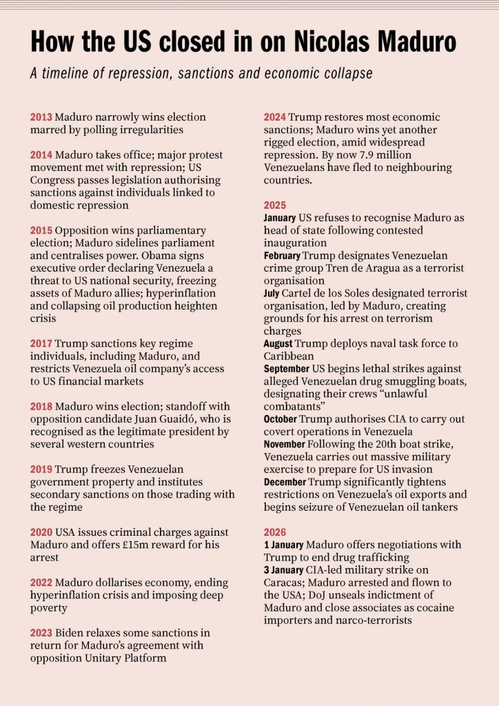 Shortly after 2am on January 3, with Caracas’s air defences in flames and its citizens livestreaming the mayhem via social media, US special forces burst through the doors of a government compound and seized the Venezuelan president, Nicolas Maduro.