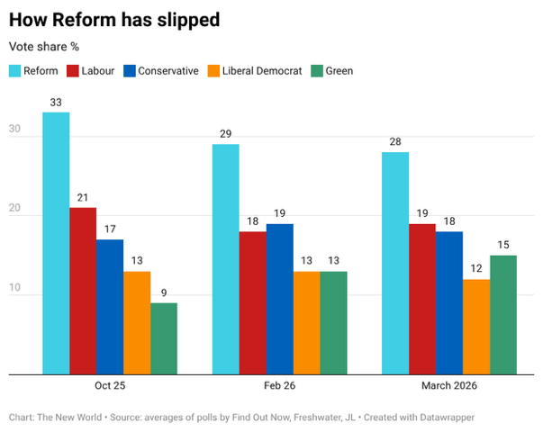 For much of last year, polls and elections showed Reform on course to win the next general election. That has changed. Over the winter, the party has lost support. Nigel Farage’s ratings have slipped and voters are more willing to vote tactically to defeat Reform candidates.