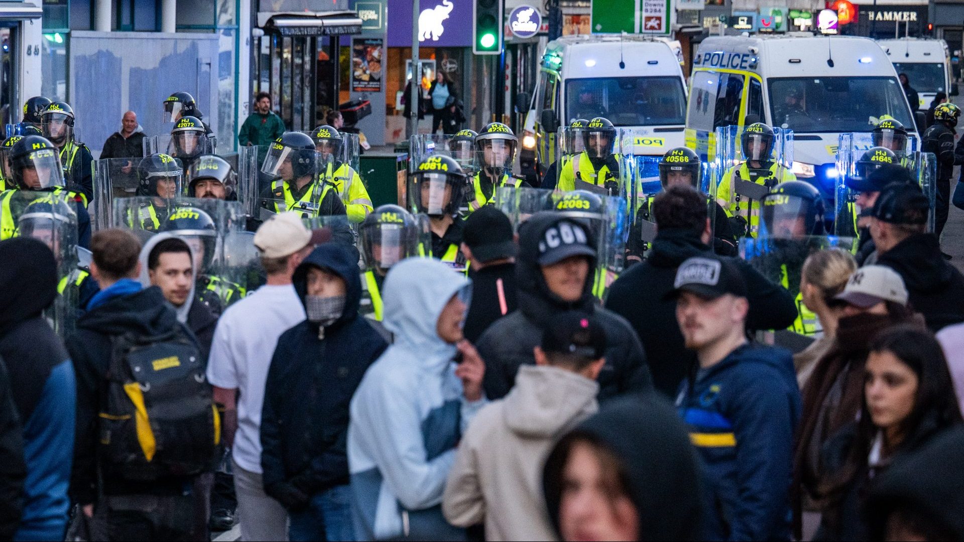 A large number of men gathered at the town’s railway station to march at 5pm, hurling eggs, beer cans and cat food at police and targeting hotels and homes where they believed asylum seekers were being hosted. But there was no evidence of asylum seekers being hosted at any of the places attacked, which included a Travelodge (which does not have any contracts with the Home Office to house asylum seekers).