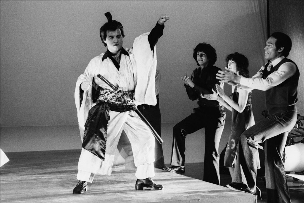 John Belushi had appeared as a samurai on SNL once before, opposite guest host Richard Pryor a month earlier. When Henry’s turn to host came, he had three suggestions for showrunner Lorne Michaels: start repeating characters from hit sketches to build a following, bring back Belushi as the samurai, and put him in ordinary situations. “Every comedy I’ve ever been involved with… depends on repetition of a kind,” Henry told writer Mike Sacks years later. “Why not do the samurai character in different situations over and over again? The repetition is funny in and of itself.”